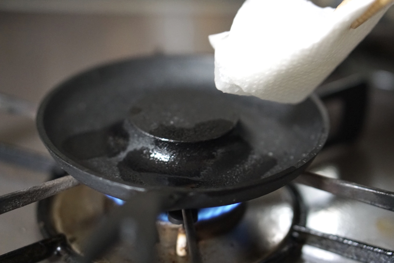 火を消してから油を塗ってください